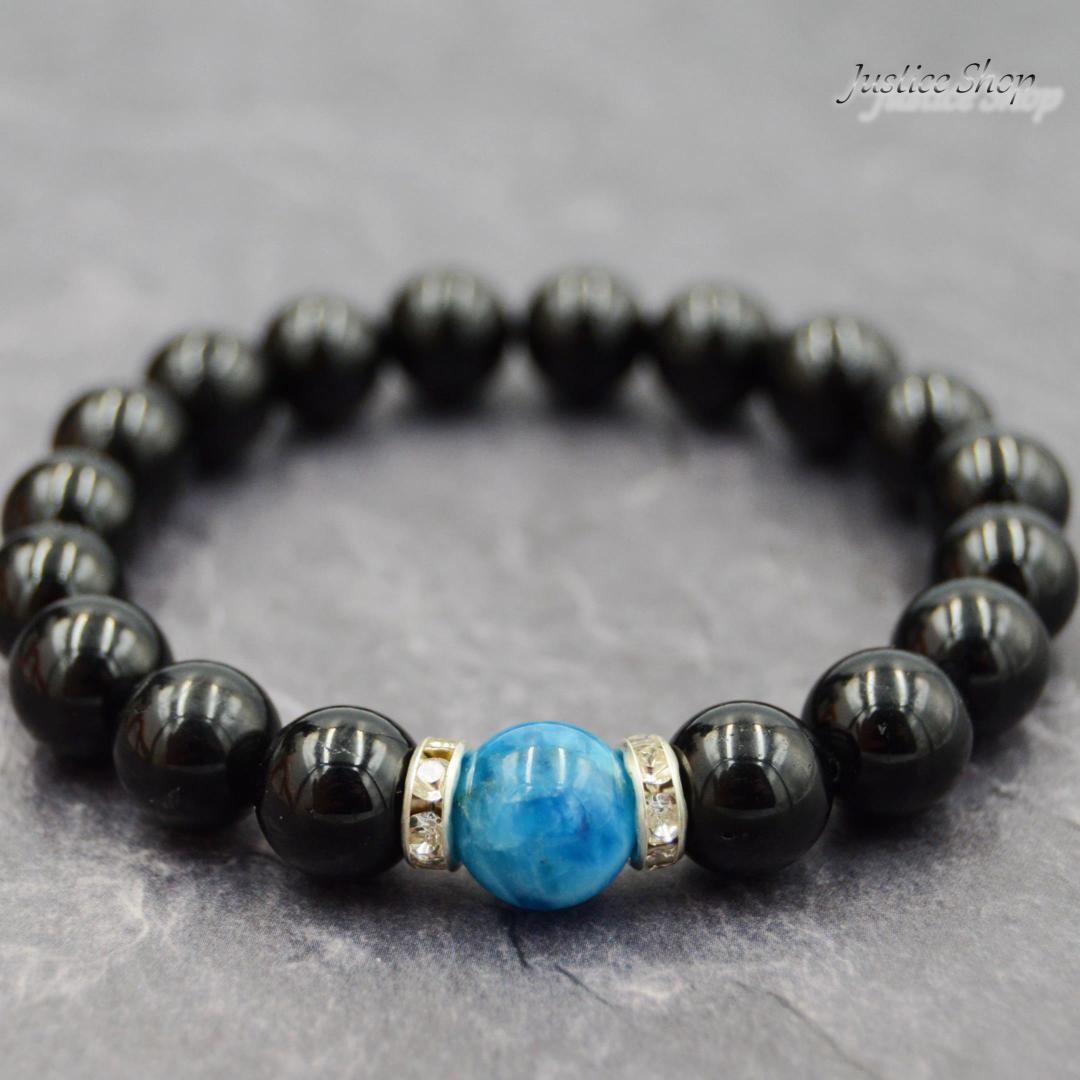 商品名 :【デザインブレスレット ブラックトルマリン(黒曜石) × アパタイト 10mm 2A1】