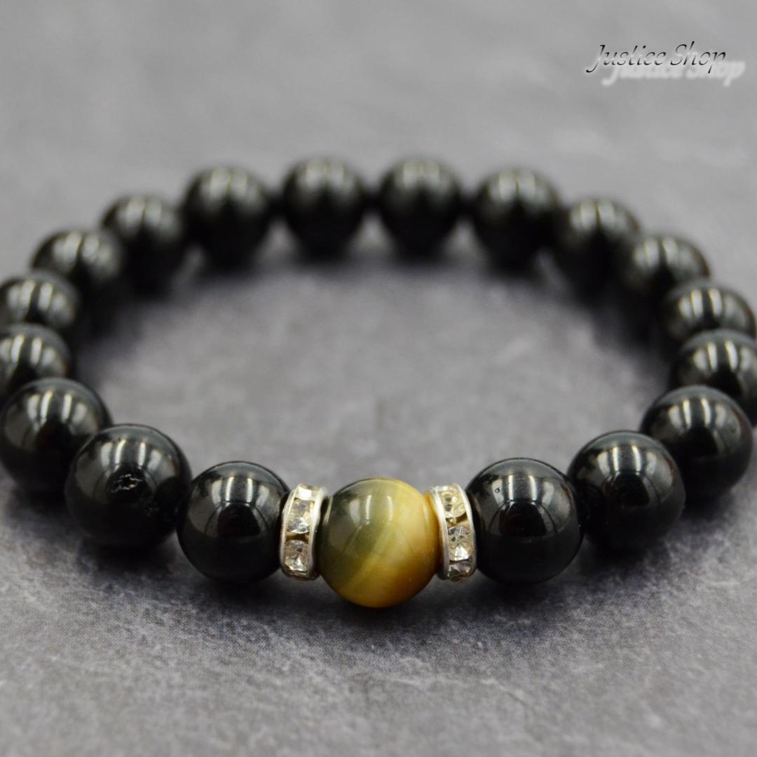 ブレスレット ブラックトルマリン × タイガーアイ 天然石 パワーストーン