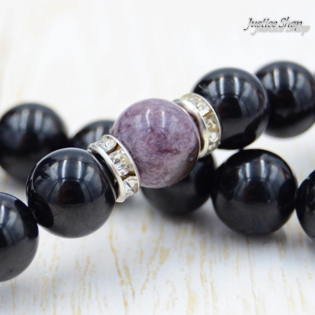 ブレスレット ブラックトルマリン × レピドライト 天然石 パワーストーン