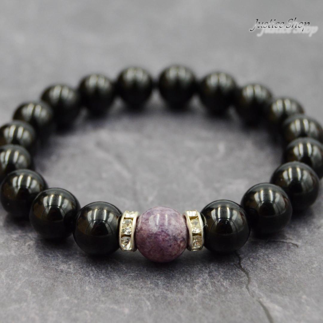 商品名 :【デザインブレスレット ブラックトルマリン(黒曜石) × レピドライト 10mm 2A1】