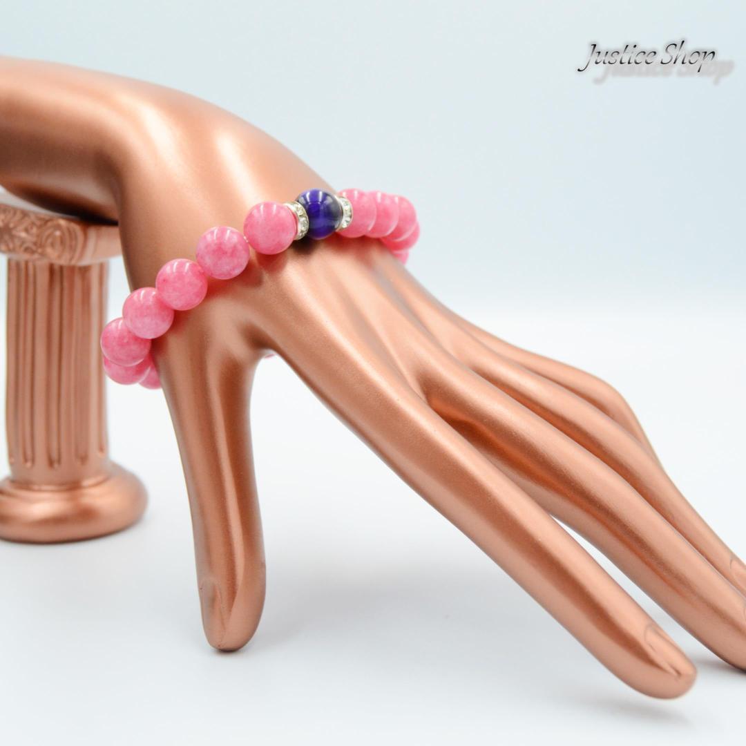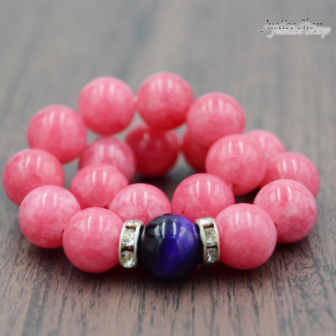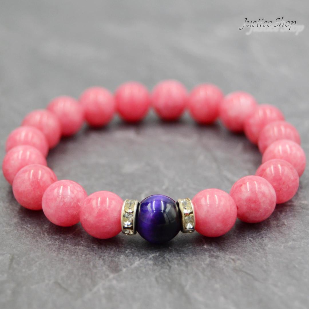 このブレスレットは、鮮やかなインカローズとパープルタイガーアイの天然石を組み合わせたオリジナルデザインです。インカローズは女性らしい優しさと愛情を象徴し、パープルタイガーアイは自己表現や自信を引き出すパワーがあると言われています。身に着けるだけで、心を落ち着かせ、ポジティブなエネルギーを受け取ることができるでしょう。