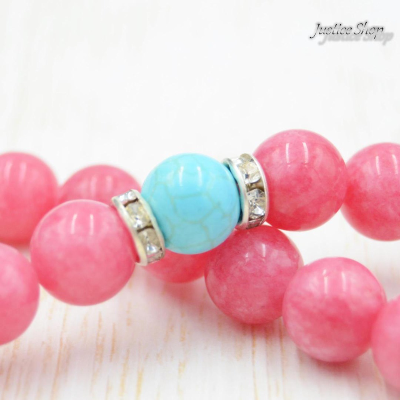 インカローズとターコイズの組み合わせで、幸福と穏やかな気持ちをもたらしてくれるパワーストーンブレスレットです。インカローズは愛と癒しの石として知られ、ターコイズは幸運と健康をもたらすとされています。このブレスレットは、日常の慌ただしさから離れ、心地よい安らぎを感じるのに最適です。