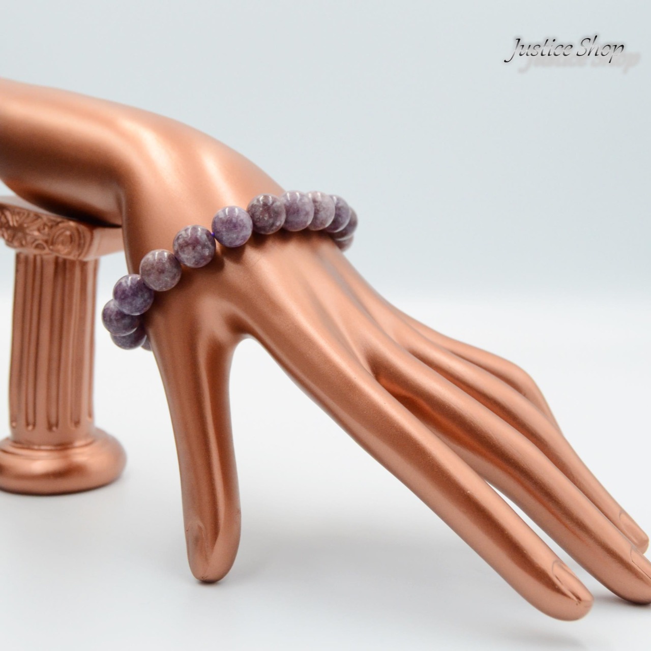 南アフリカで採掘された天然石を使用したハンドメイドのパワーストーンブレスレットです。高品質の10mmのレピドライトが、装着するだけで身に着ける人に幸運や癒しをもたらします。ブレスレットはシンプルなデザインで、装着することで日常のコーディネートにアクセントを加えます。