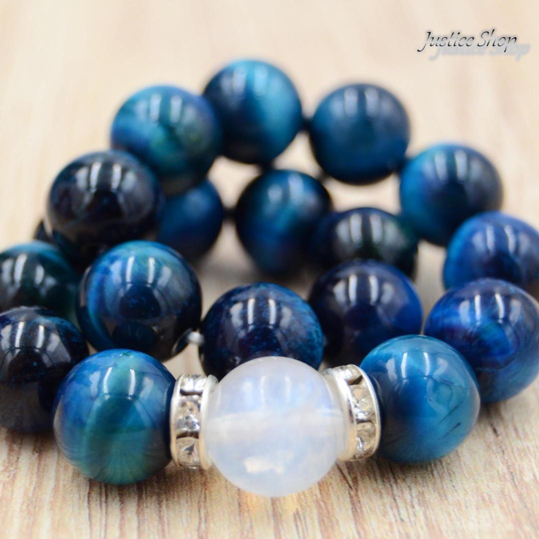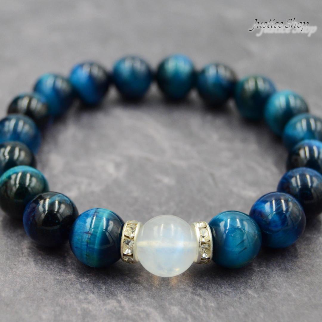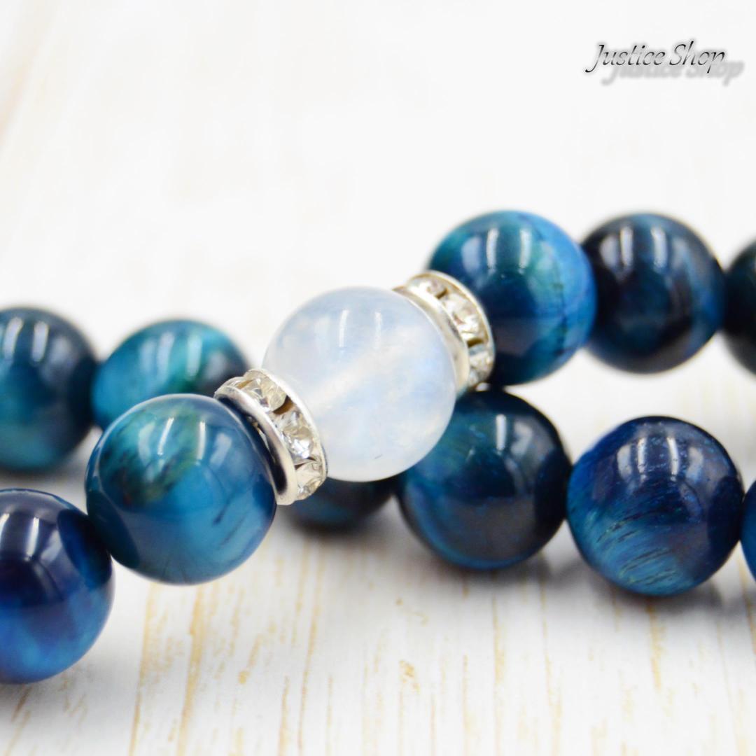 ブレスレット サファイアブルータイガーアイ × ブルームーンストーン7A 天然石 パワーストーン