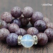 レピドライトとブルームーンストーン7Aのパワーストーンを贅沢に使用しました。レピドライトは直感力を高め、癒しの波動を持ち、ブルームーンストーン7Aは女性らしさや直感力をサポートすると言われています。