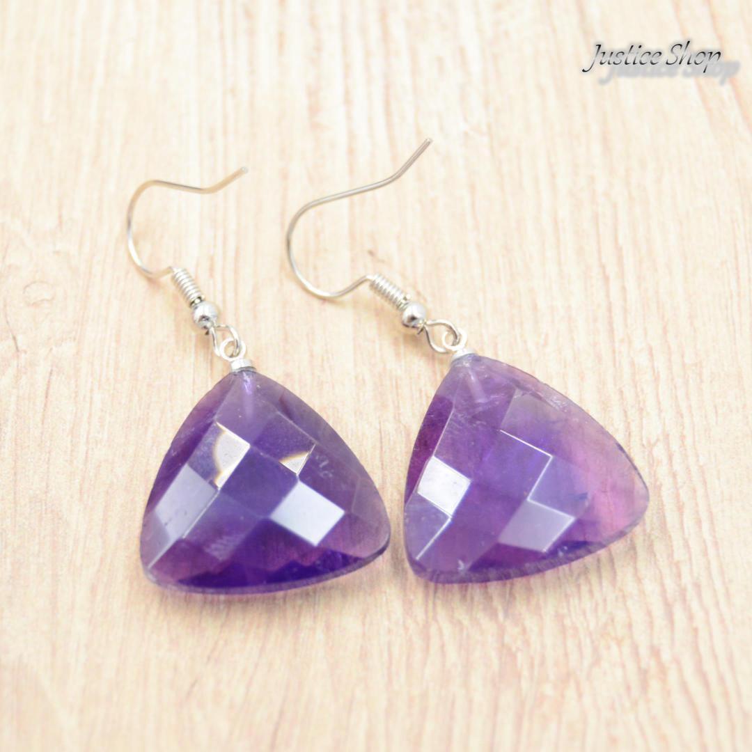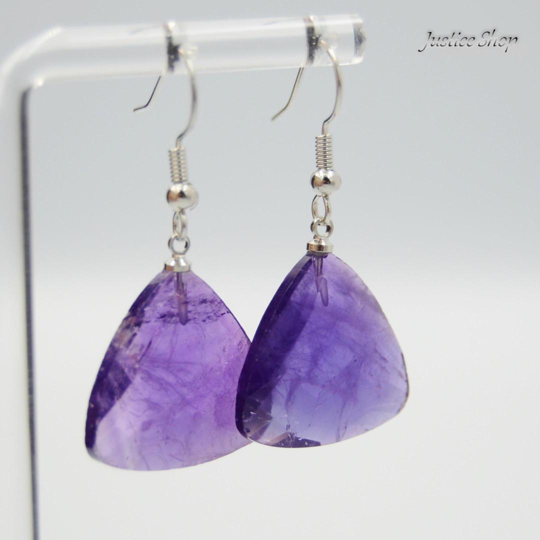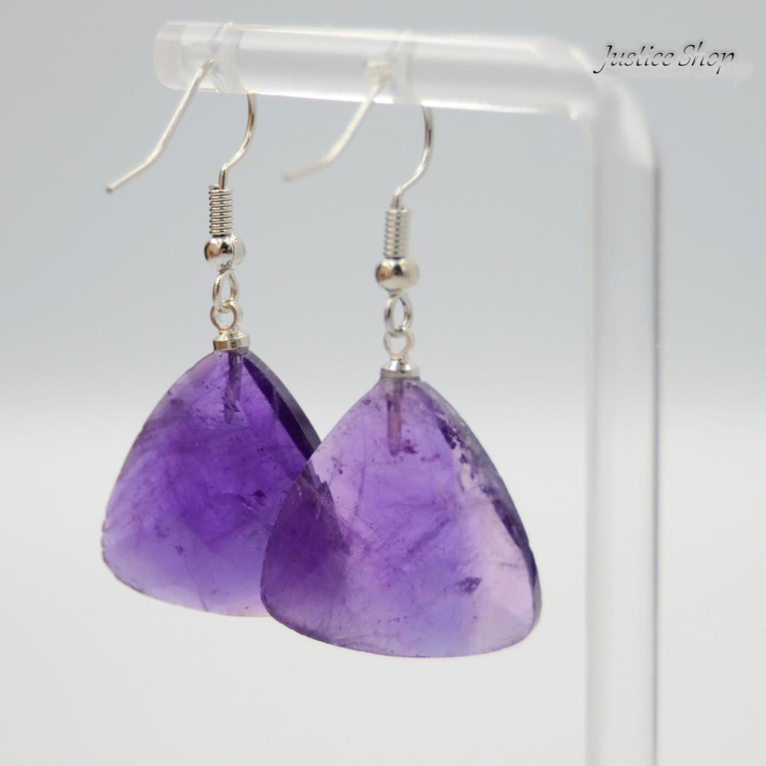 美しい紫色のアメジストをあしらったトライアングル型のデザインが特徴的なアクセサリーです。天然石のパワーとトレンディなデザインが融合した、オシャレでパワフルなアイテムです。アメジストは、ストレス解消や心の安定をもたらすとされ、身につけることで気持ちがリフレッシュされるかもしれません。