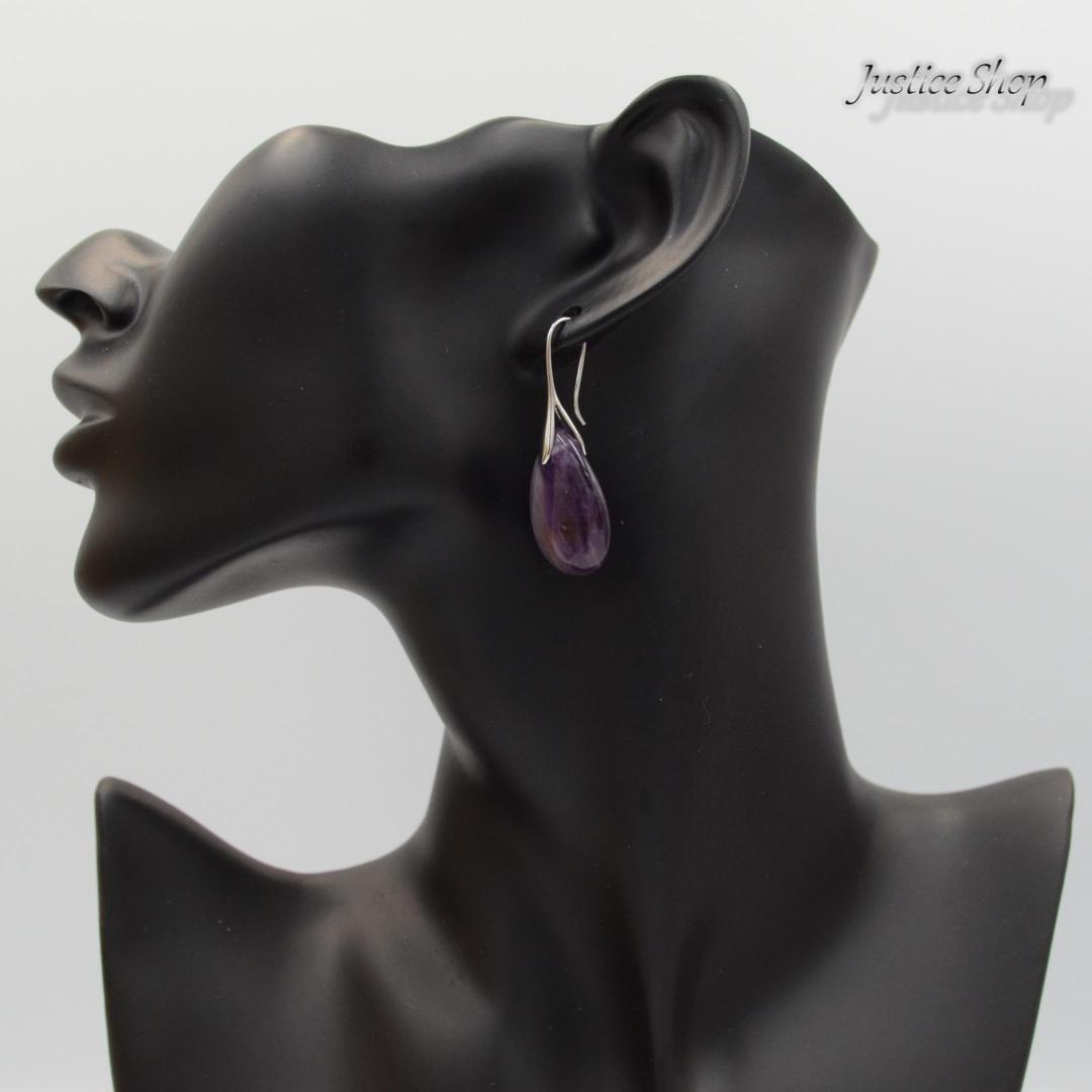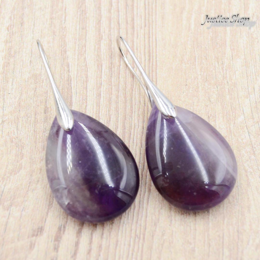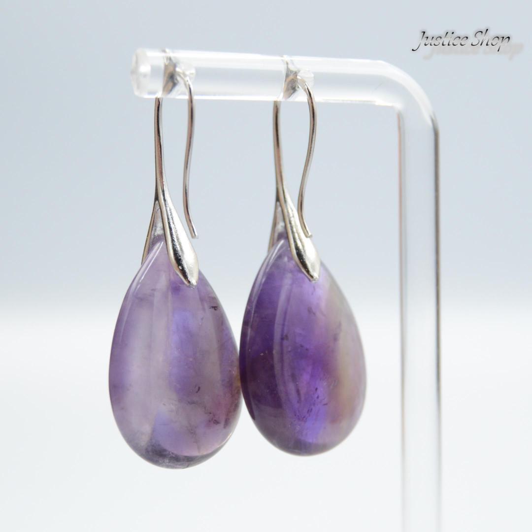 自然な美しさと心を鎮めるパワーを持っています。アメジストは高貴な紫色が美しい天然石で、心を平和に導いてくれると言われています。このピアスはアメジストの特性を最大限に引き出すよう丁寧に磨かれており、耳元で輝きを放っています。