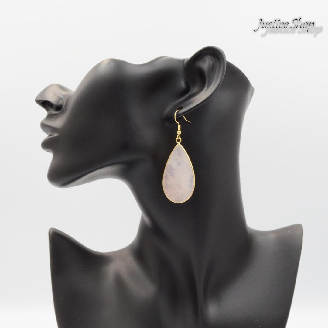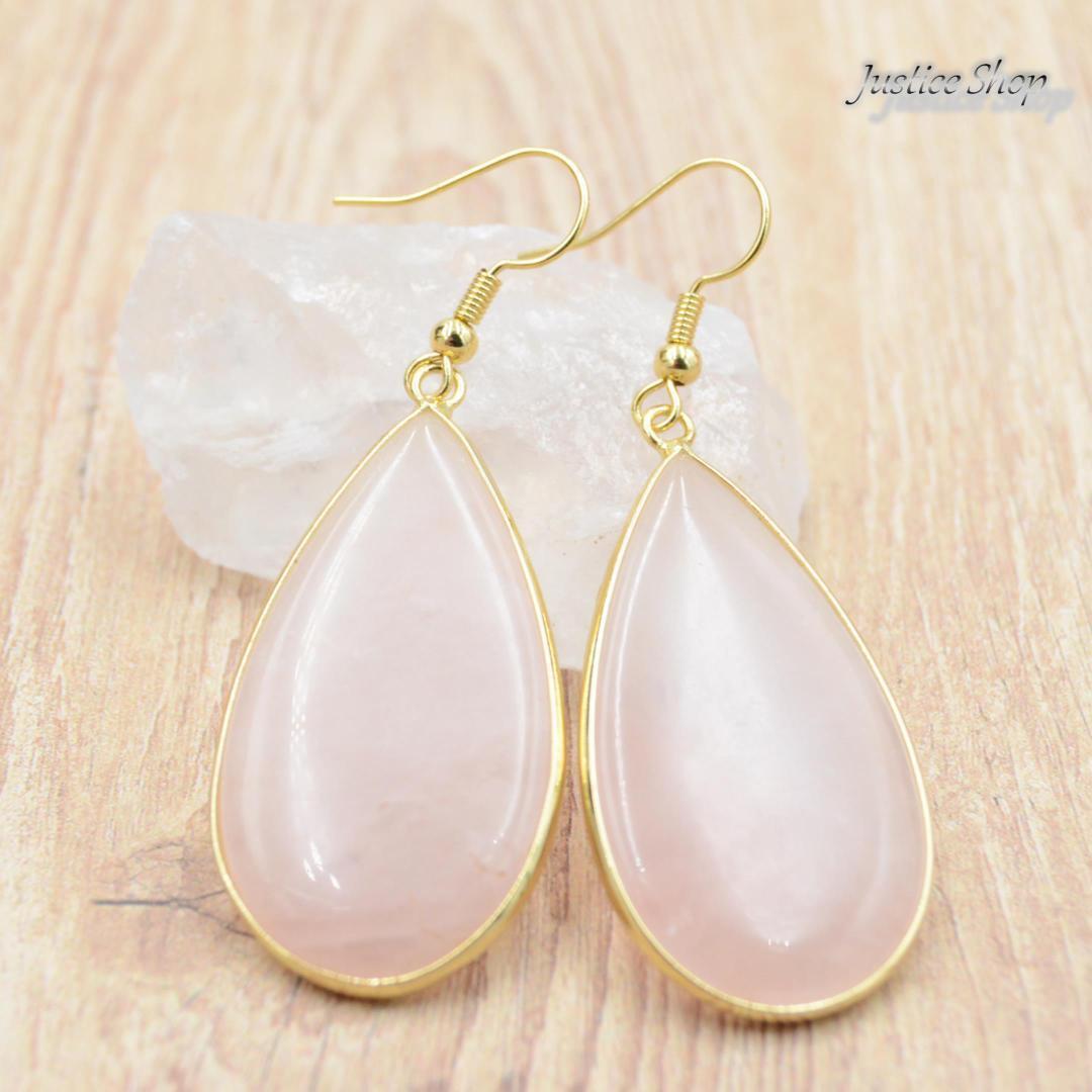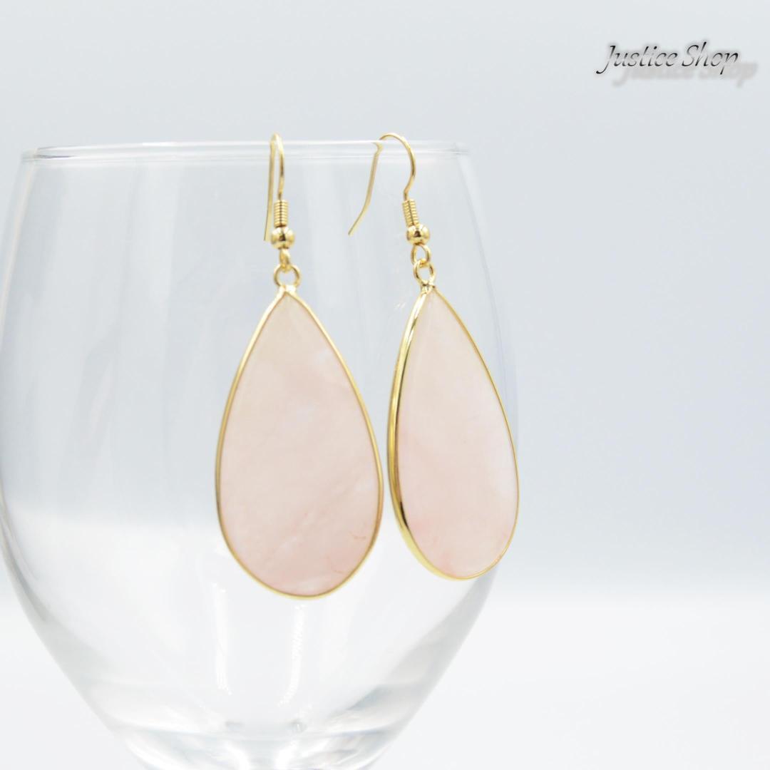 ティアドロップシェイプのローズクォーツ天然石を使用したピアス。優しいピンク色が女性らしさを引き立てます。ローズクォーツのパワーストーンは愛情や癒しを象徴し、日常に幸福感を運んでくれます。おしゃれなデザインで、普段使いからパーティーシーンまで幅広く活躍します。