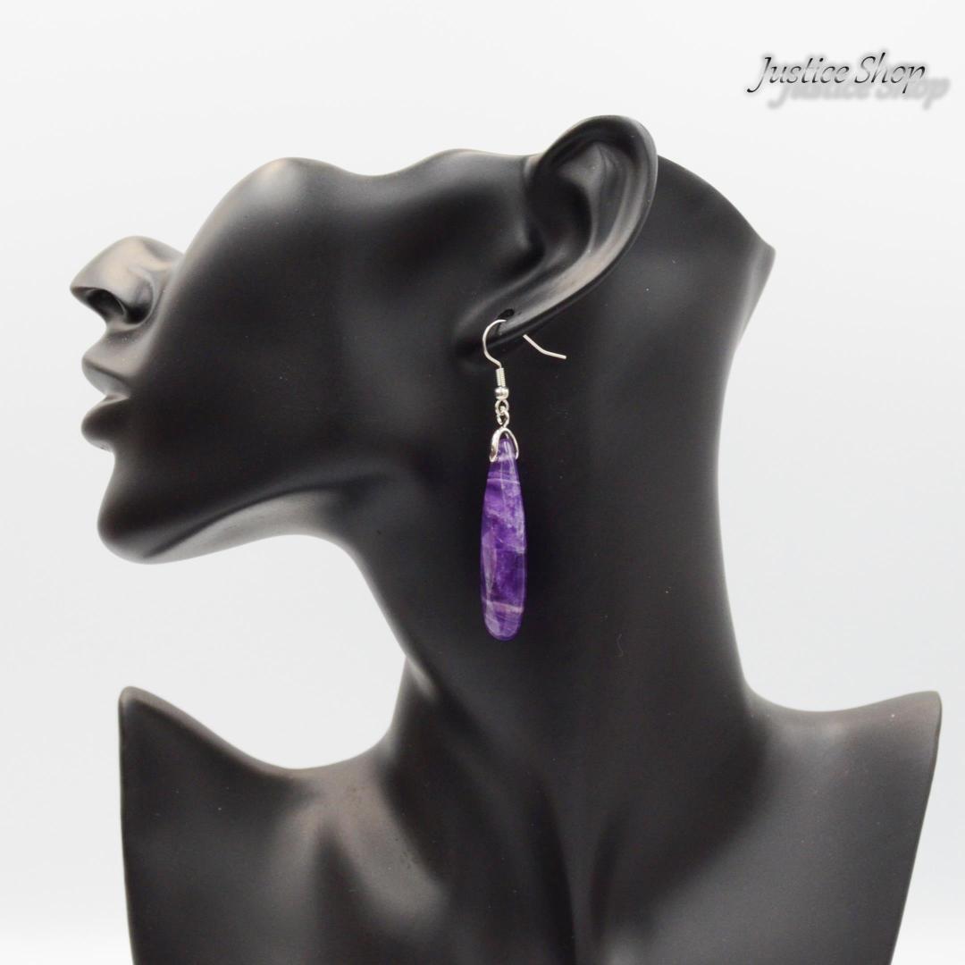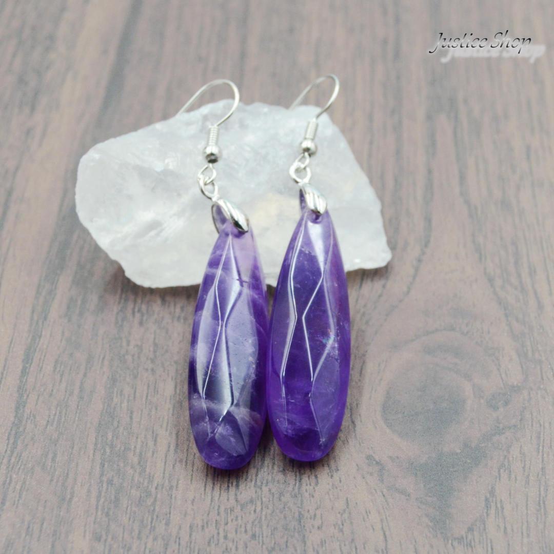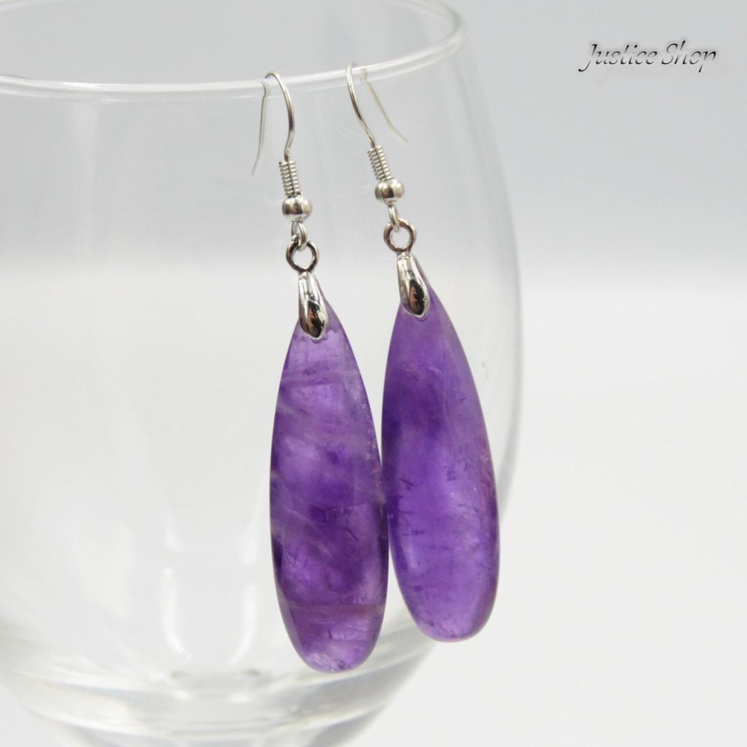 天然のアメジストを贅沢に使用して作られた、美しいデザインのピアスです。ティアドロップの形が繊細さとエレガンスを演出し、パープルカラーのアメジストが輝きを放ちます。天然石のパワーと共に、おしゃれを楽しむことができるアイテムとなっています。