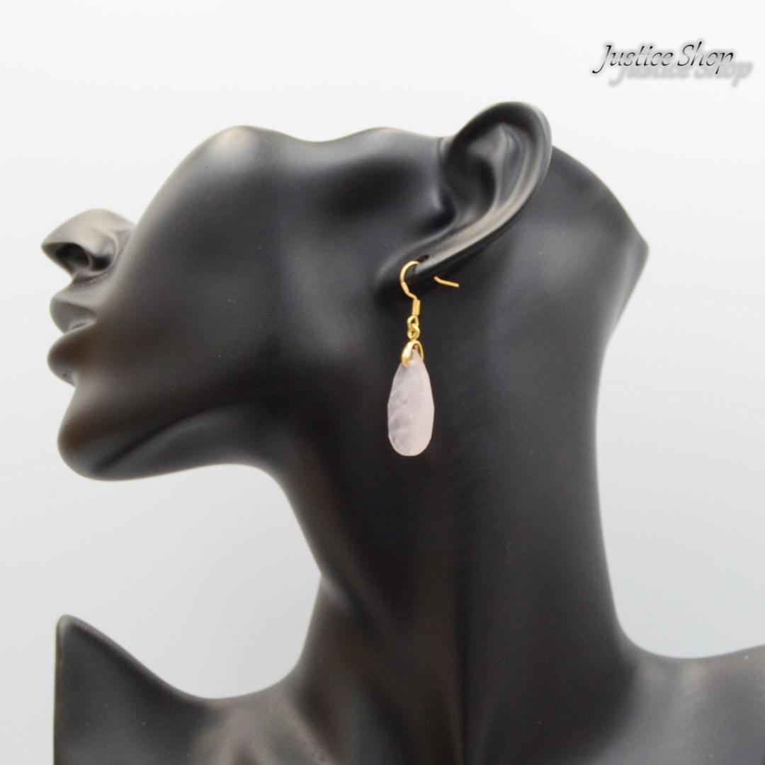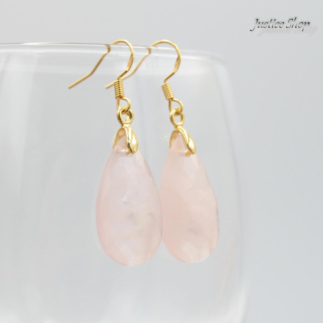 ピアス ティアドロップ ローズクォーツ 天然石 パワーストーン 007