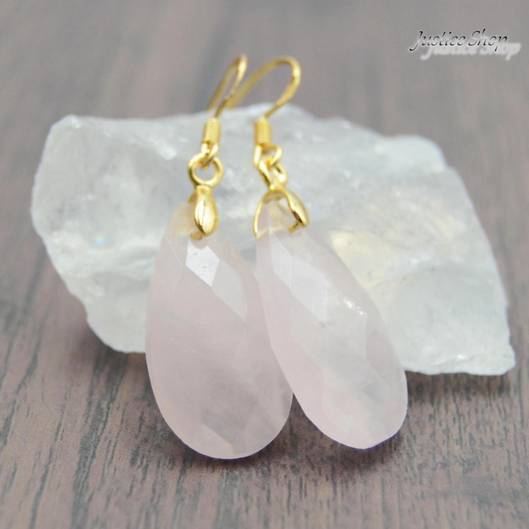 自然が生み出した美しいローズクォーツを使用した、ティアドロップデザインのピアスです。ピアスの先端には、パワーストーンとして知られるローズクォーツがキラリと輝きます。優しいピンク色の石は、愛や癒しを象徴し、身につける方に幸福感をもたらします。