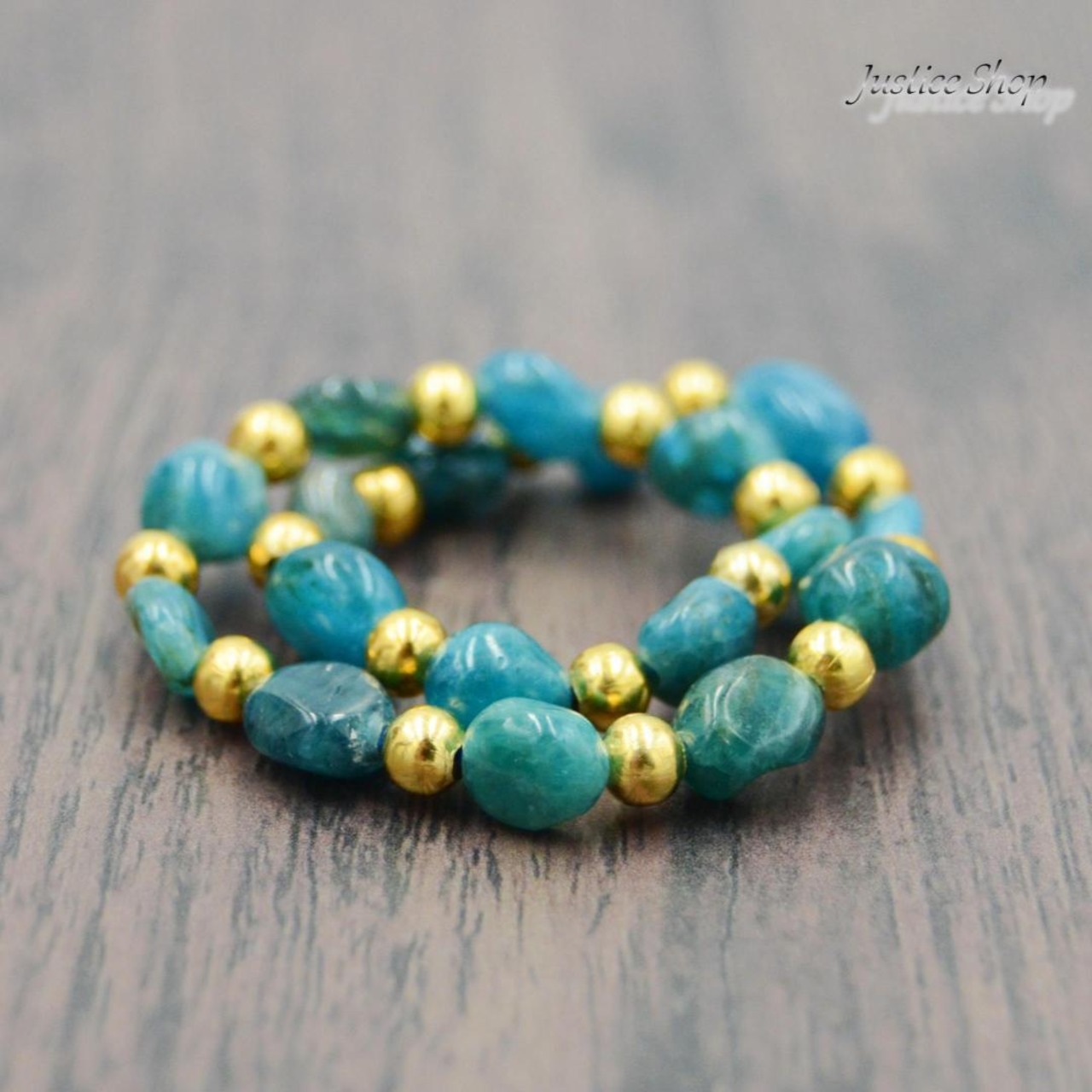 豊かな色合いと深い意味を持つアパタイトの天然石を使用したブレスレット。パワーストーンとしての効果も期待できる。