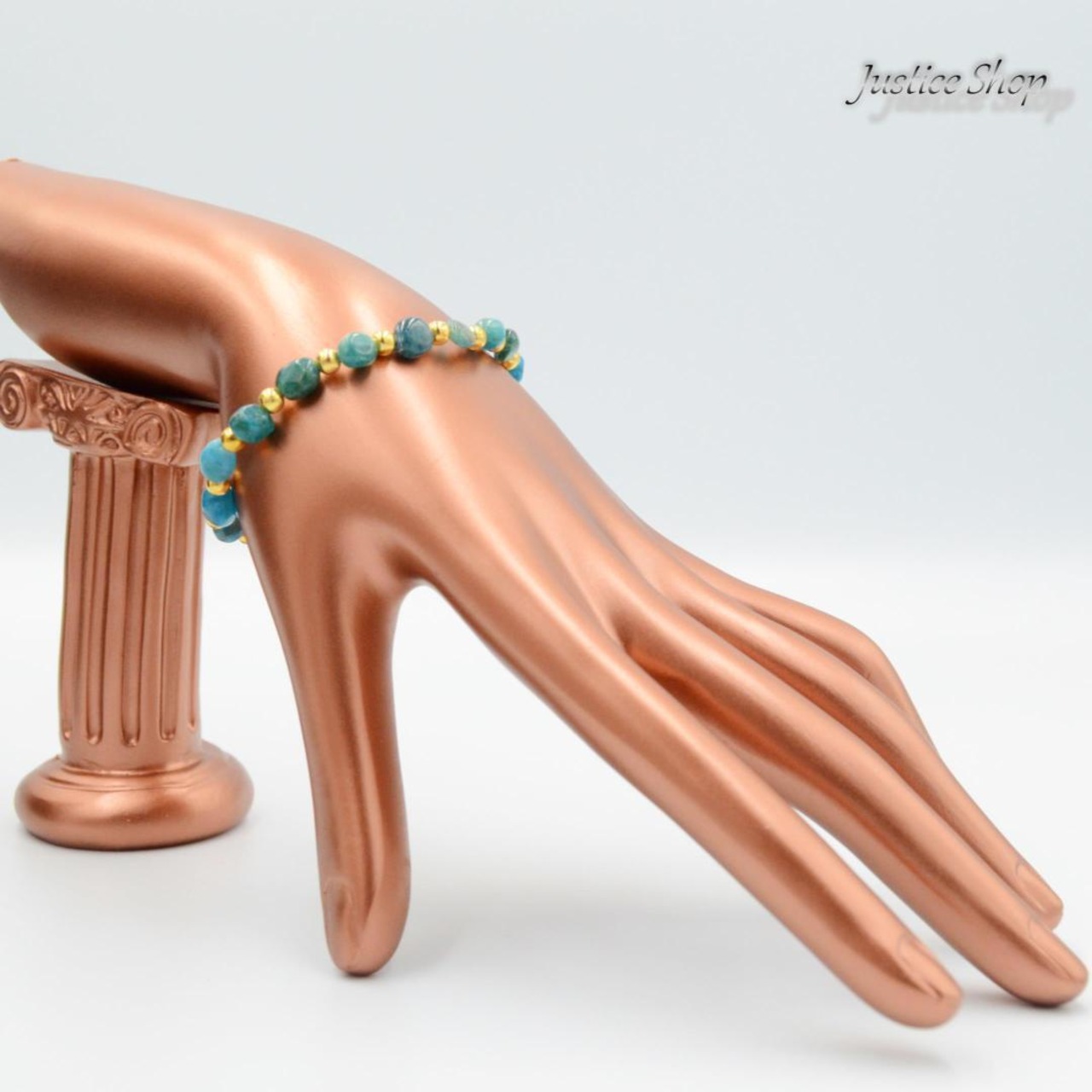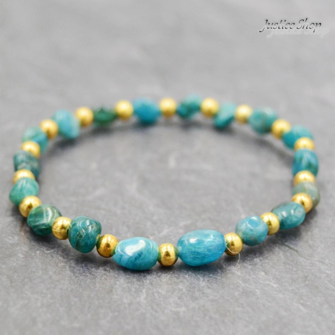 このブレスレットは、6~8mmのサイズのアパタイトの天然石を贅沢に使用しています。アパタイトは、古代から幸運や豊かさをもたらす石として知られており、身につけることでポジティブなエネルギーを引き寄せると言われています。