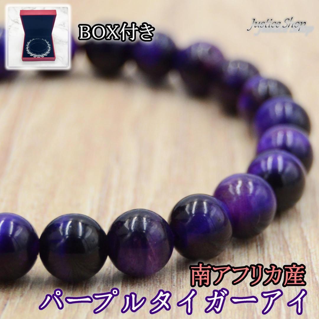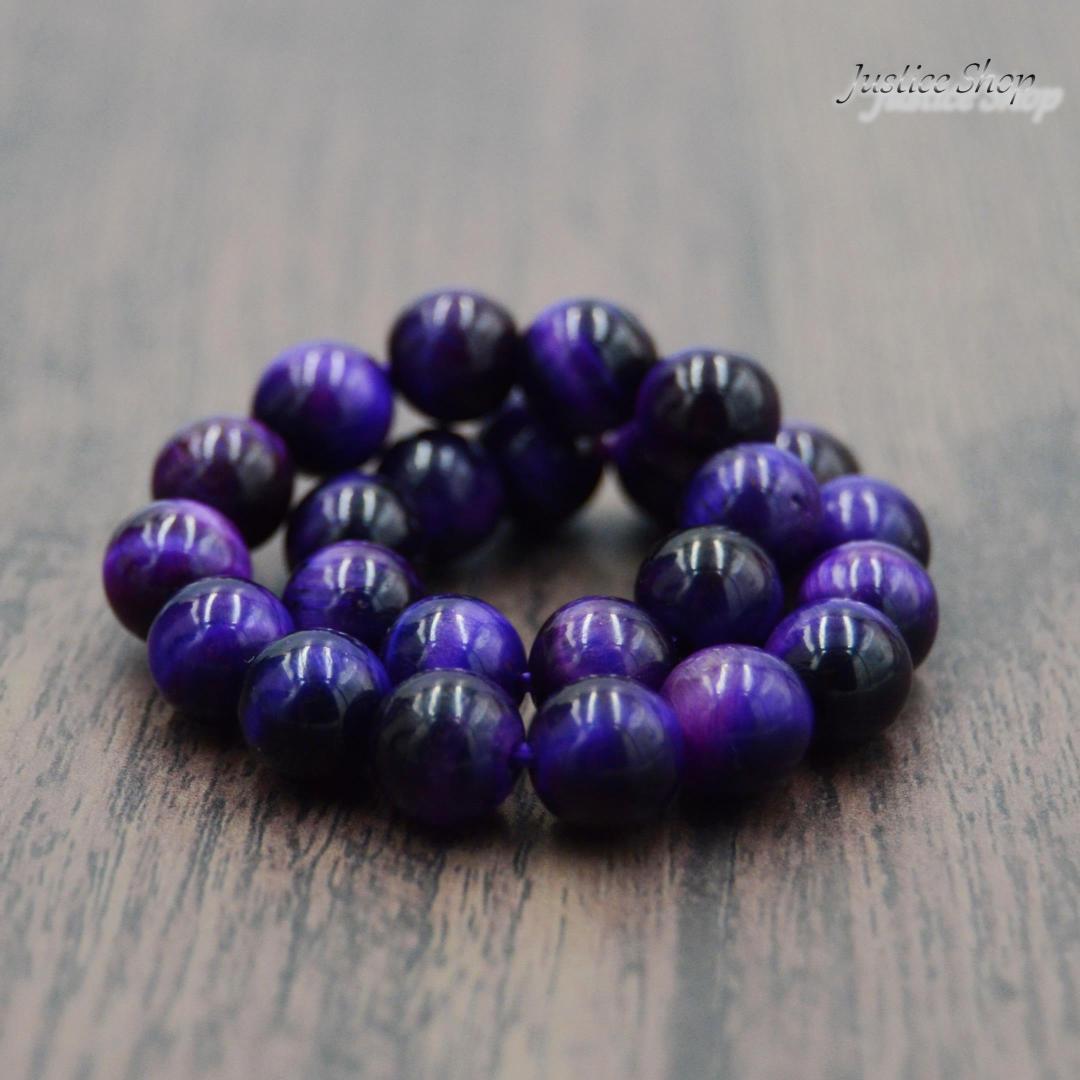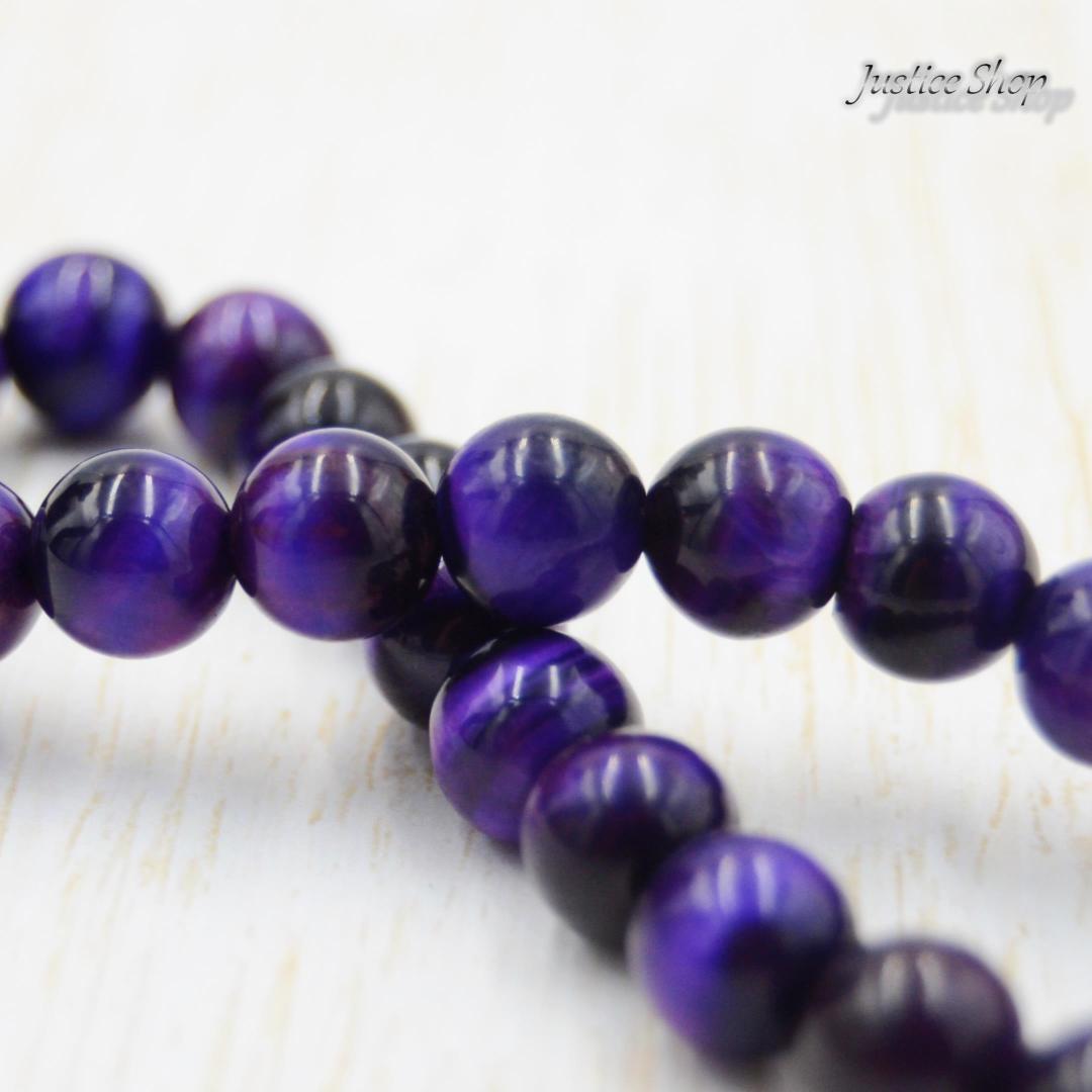 南アフリカ産の天然石を使用したパワーストーンです。パープルタイガーアイは、直感力を高め、心身のバランスを整えると言われています。8mmサイズの丸い石を使用し、洗練されたデザインが際立ちます。