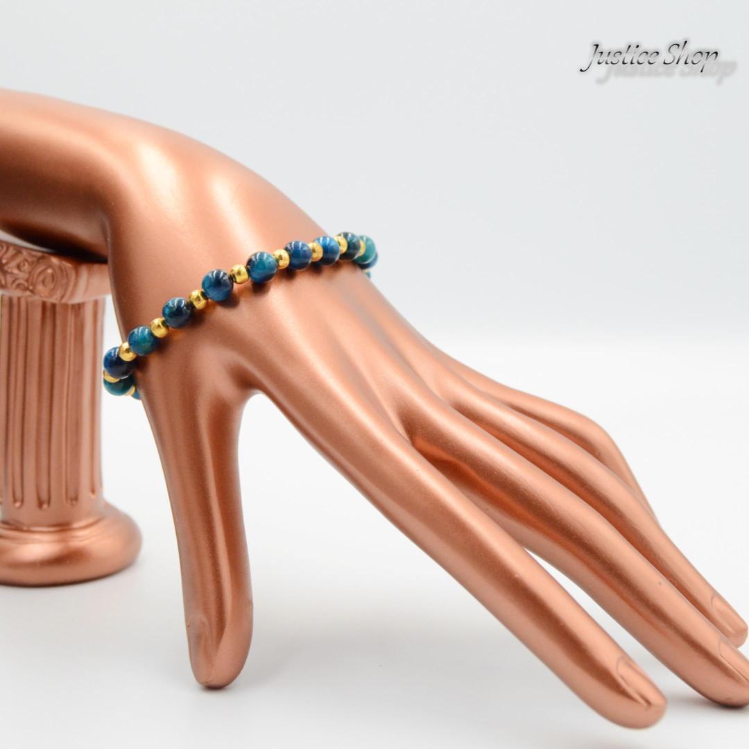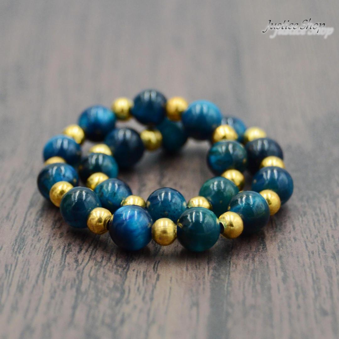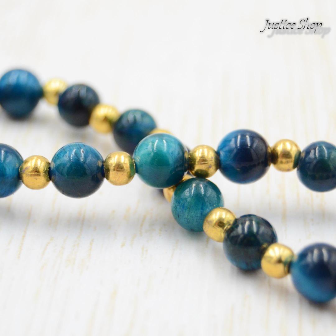 サファイアブルータイガーアイは、パワフルな宝石として知られ、対立するエネルギーを調和させると言われています。このブレスレットは、6mmの天然石を使用しており、手首にほどよいアクセントを添えます。