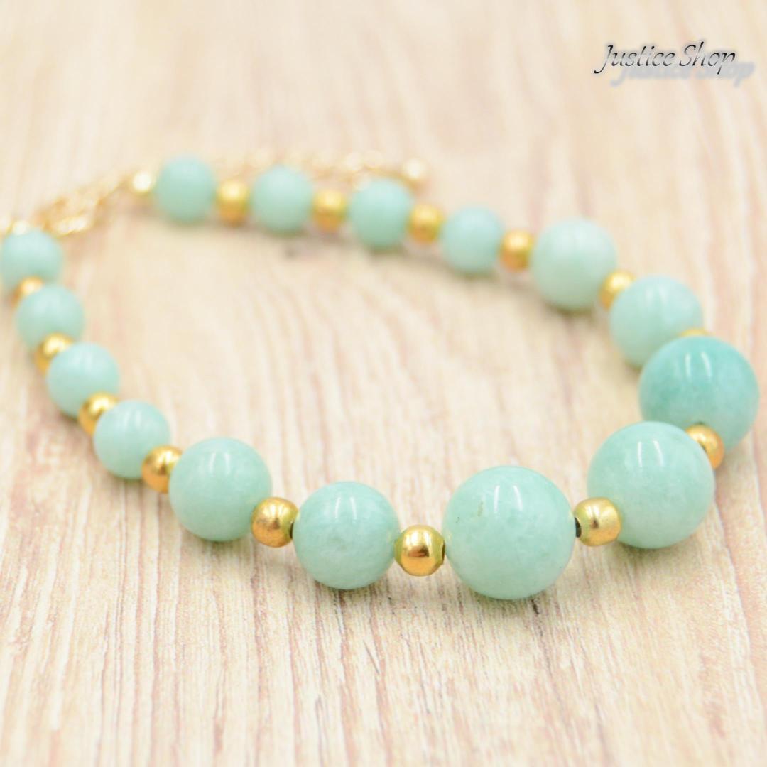 緑翡翠は、心を落ち着かせ、洞察力を高め、幸運を呼び込むとも言われています。このブレスレットを身につけて、日常のストレスや疲れを癒し、ポジティブな気持ちをサポートしてみてください。