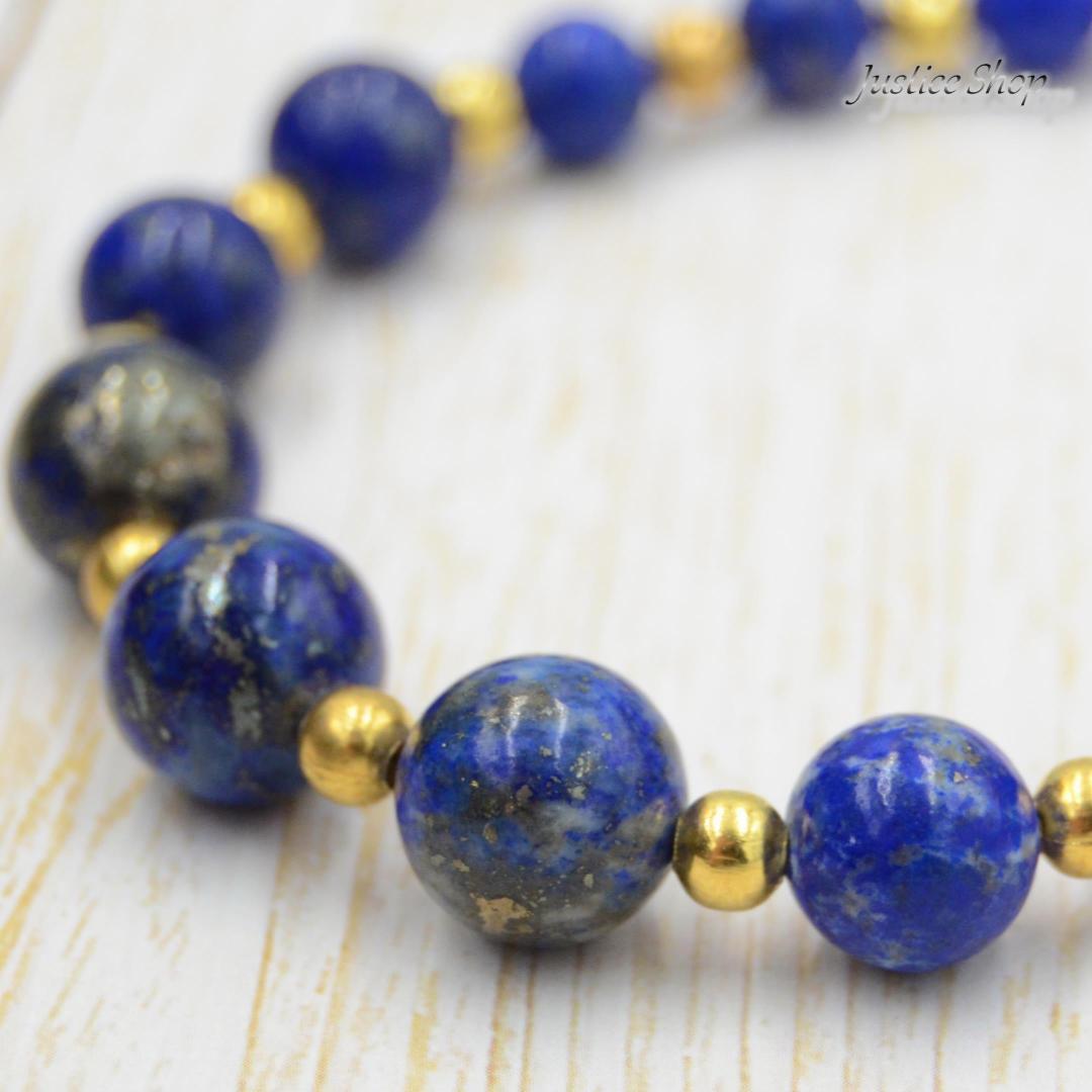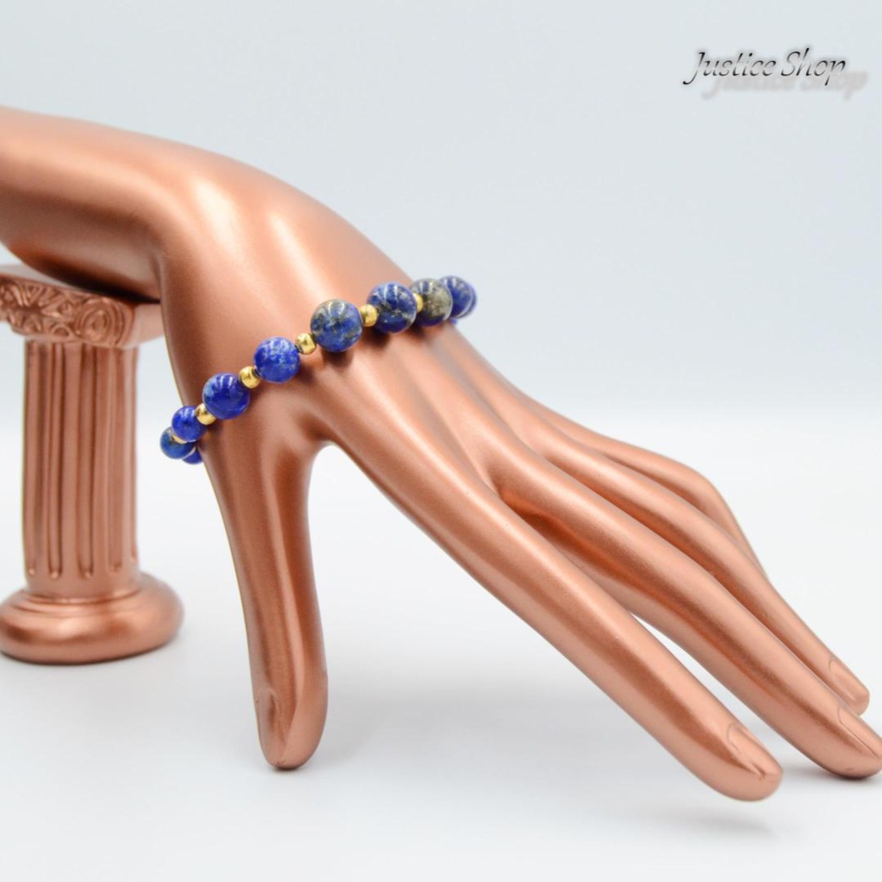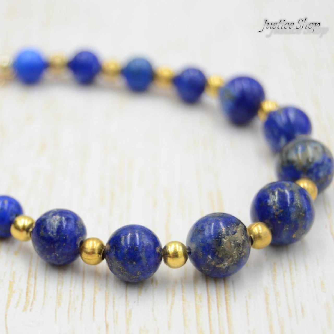 美しい青色の天然石がアクセントとなったハンドメイドのブレスレットです。ラピスラズリは古代エジプトから愛されるパワーストーンであり、知恵や直感力を高め、邪悪なエネルギーを遠ざけると言われています。