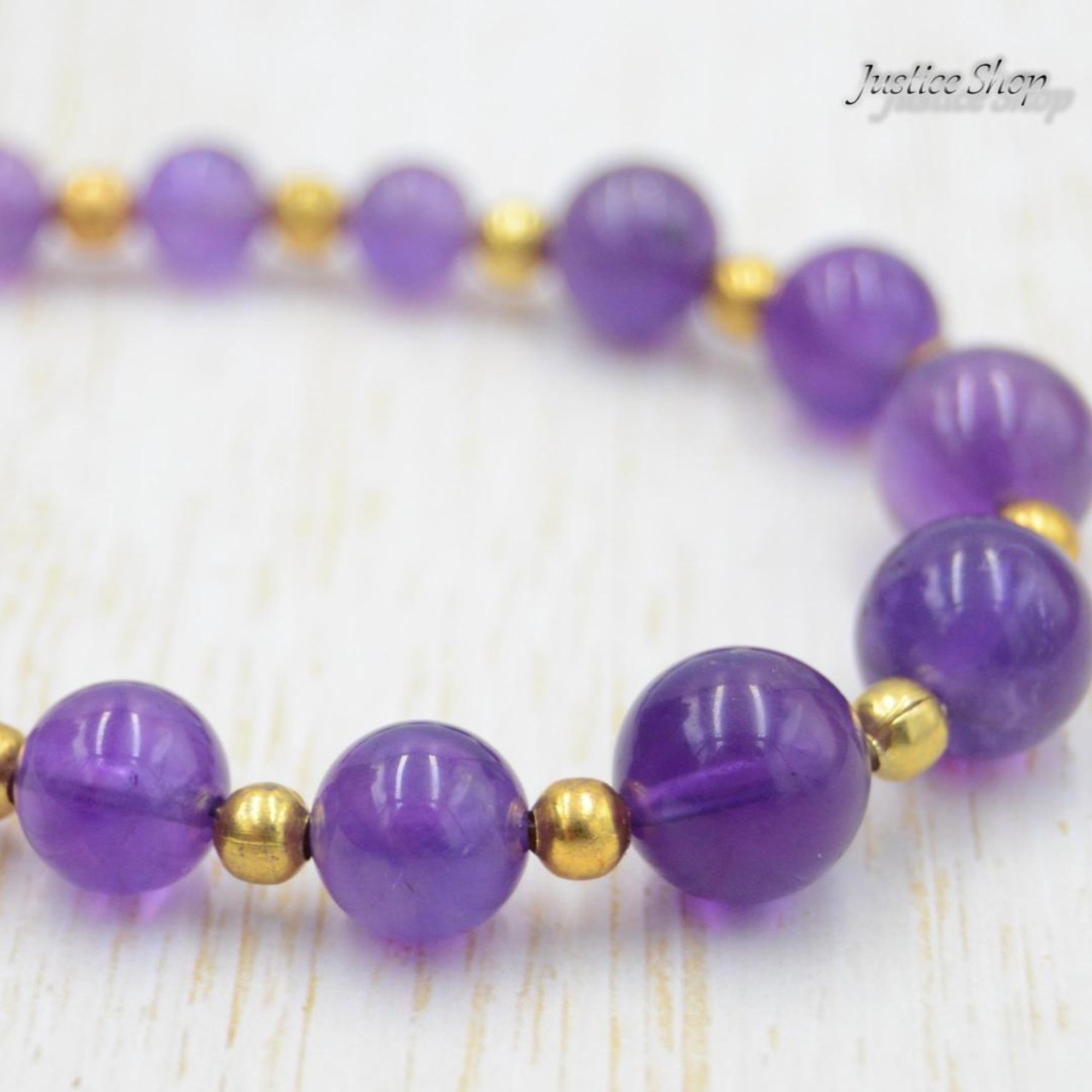 一粒一粒、心を込めて丁寧に作られたブレスレットは、お守りとして日常に寄り添い、幸せを呼び込んでくれるでしょう。アメジストの持つパワーと美しさに触れながら、日々の暮らしを豊かに彩ってください。