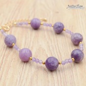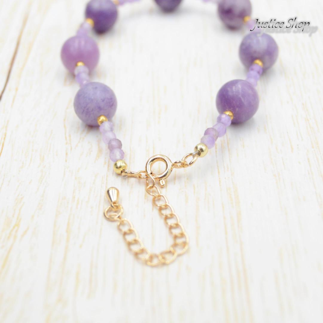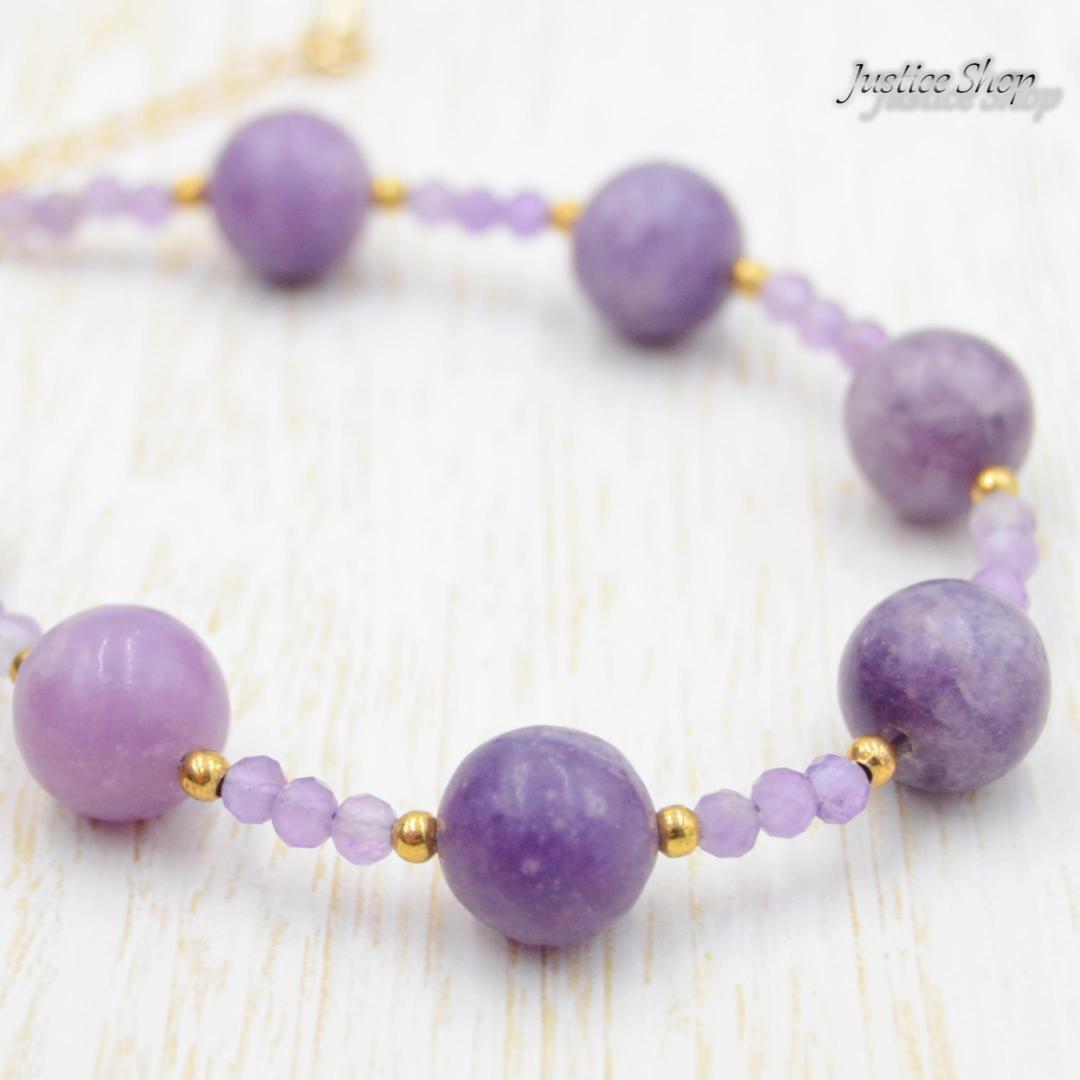 天然石の力を身にまとい、パワフルでエレガントな存在感を演出します。スギライトはヒーリング効果があり、マイナスエネルギーを払い、ポジティブな気持ちを引き寄せます。アメジストは知恵と情熱をもたらし、クリエイティブな活動をサポートしてくれます。どんなシーンでも輝きを放つ一点もののブレスレットは、あなたの魅力と個性を引き立てます。心を込めて選び抜かれた天然石は、あなたの日常に幸福とバランスをもたらします。