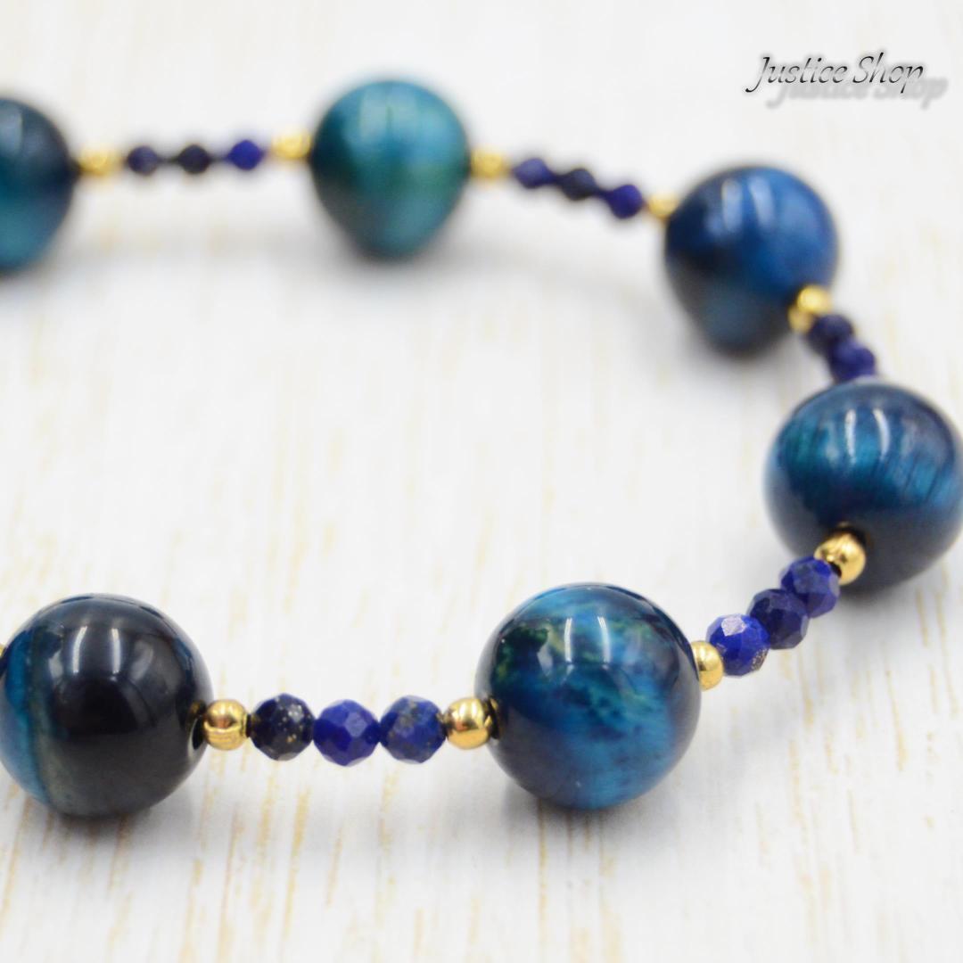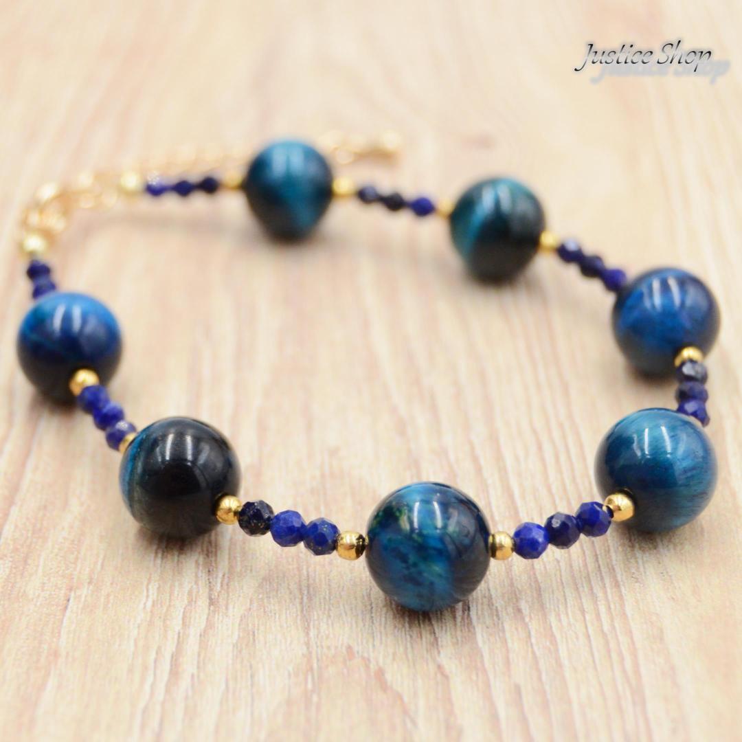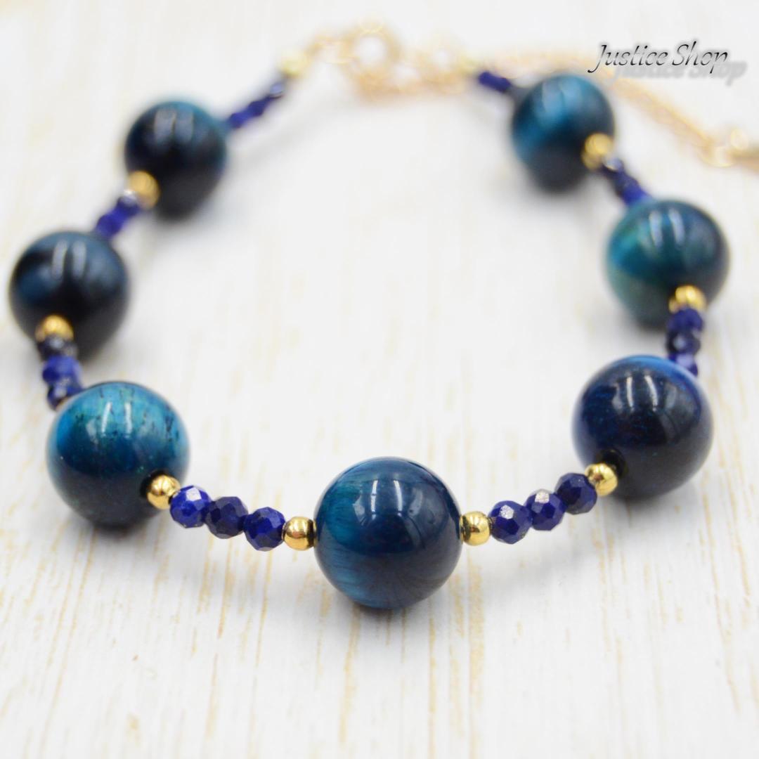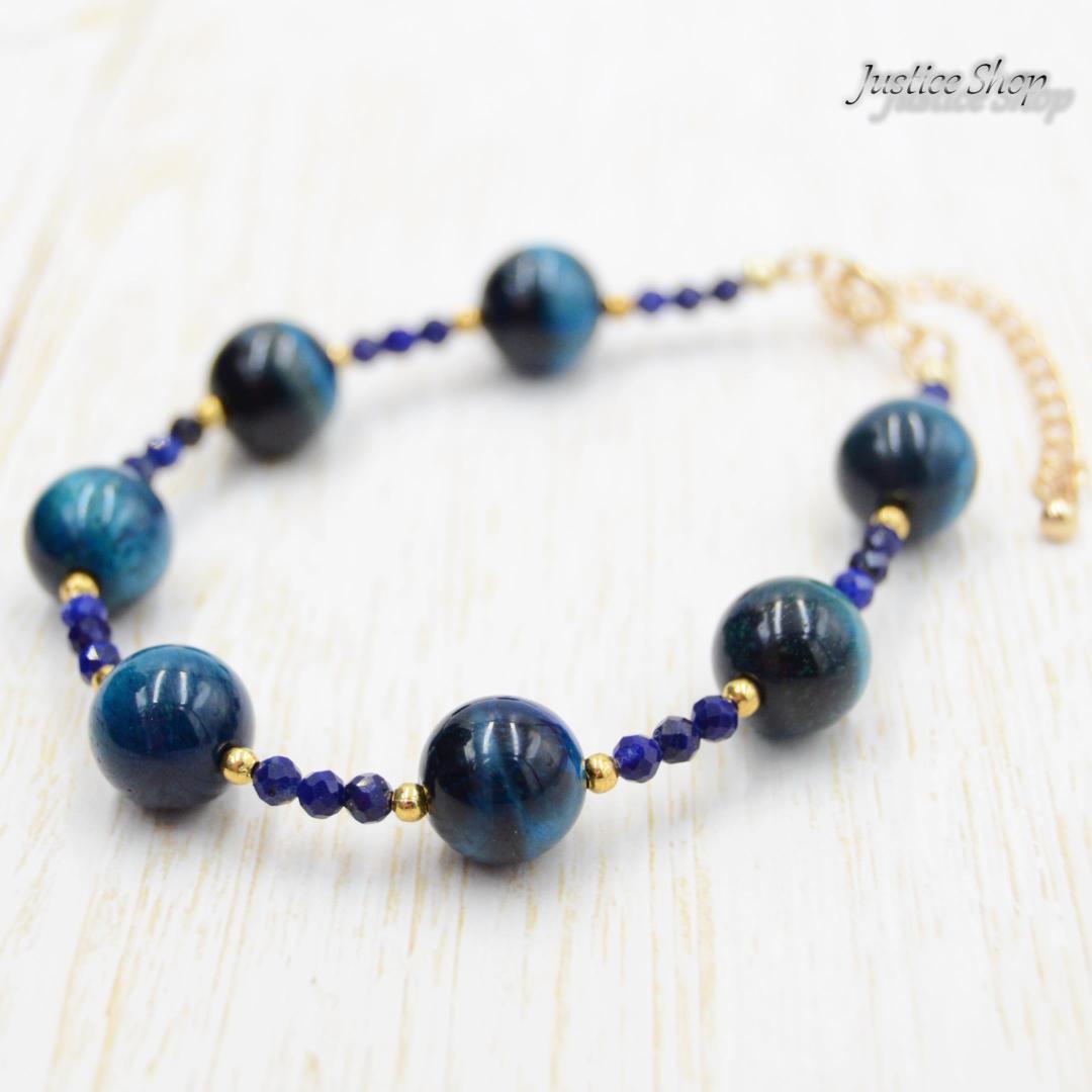 神秘的な力を持つ天然石、サファイアブルータイガーアイとラピスラズリが融合したこのブレスレットは、あなたの日常を特別なものにします。