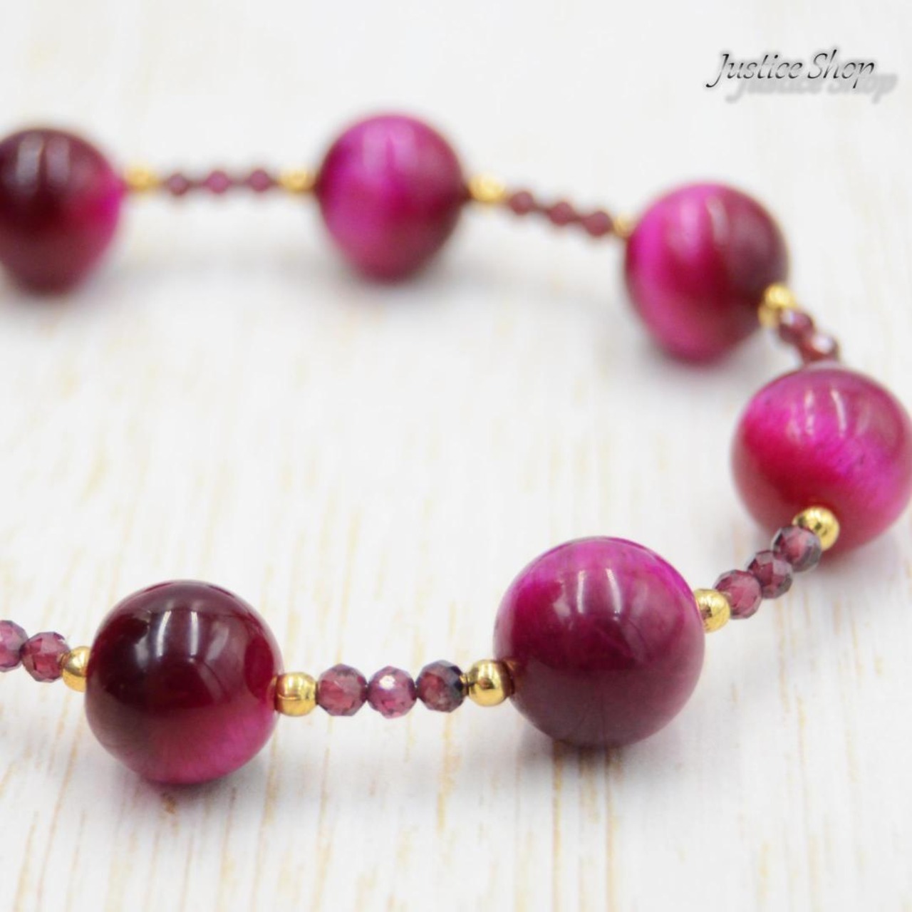 レッドタイガーアイは、燃えるような赤い色合いでパワフルなエネルギーを持ち、行動力や決断力を助けると言われています。一方、ガーネットは愛情や情熱を象徴し、人間関係を豊かにしてくれるとされています。このブレスレットは、両方のパワーを身にまとい、日々の活動をバックアップします。エレガントでありながら、力強さも感じられるデザインは、ビジネスシーンからカジュアルまで幅広く活躍してくれることでしょう。自分用にはもちろん、特別な人へのギフトとしてもオススメです。天然石ならではの個性や色合いも楽しんでいただけます。