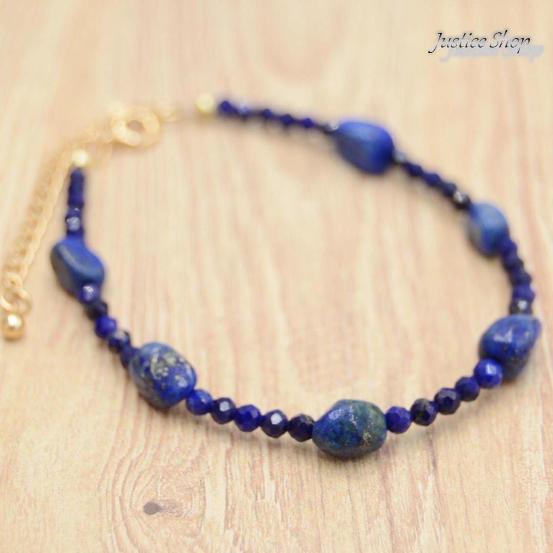 美しいラピスラズリの天然石を使用したブレスレットです。ティアドロップ型の石が繊細な輝きを放ち、手首を華やかに彩ります。ラピスラズリは、古代から愛されるパワーストーンとして知られ、思考を整理し、心を安定させる効果があります。このブレスレットは、日常の装いにアクセントを加えてくれるだけでなく、パワーストーンとしての効果も期待できるアイテムです。あなたの日常を幸せで満たす、特別な存在となることでしょう。