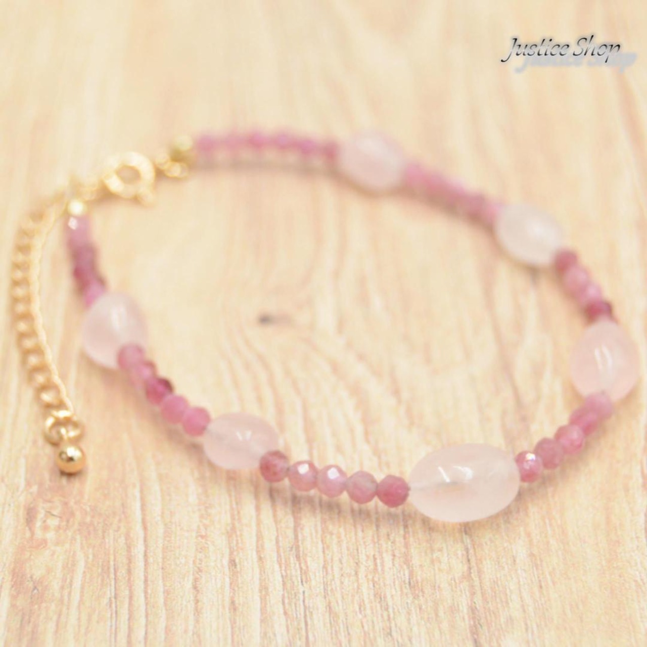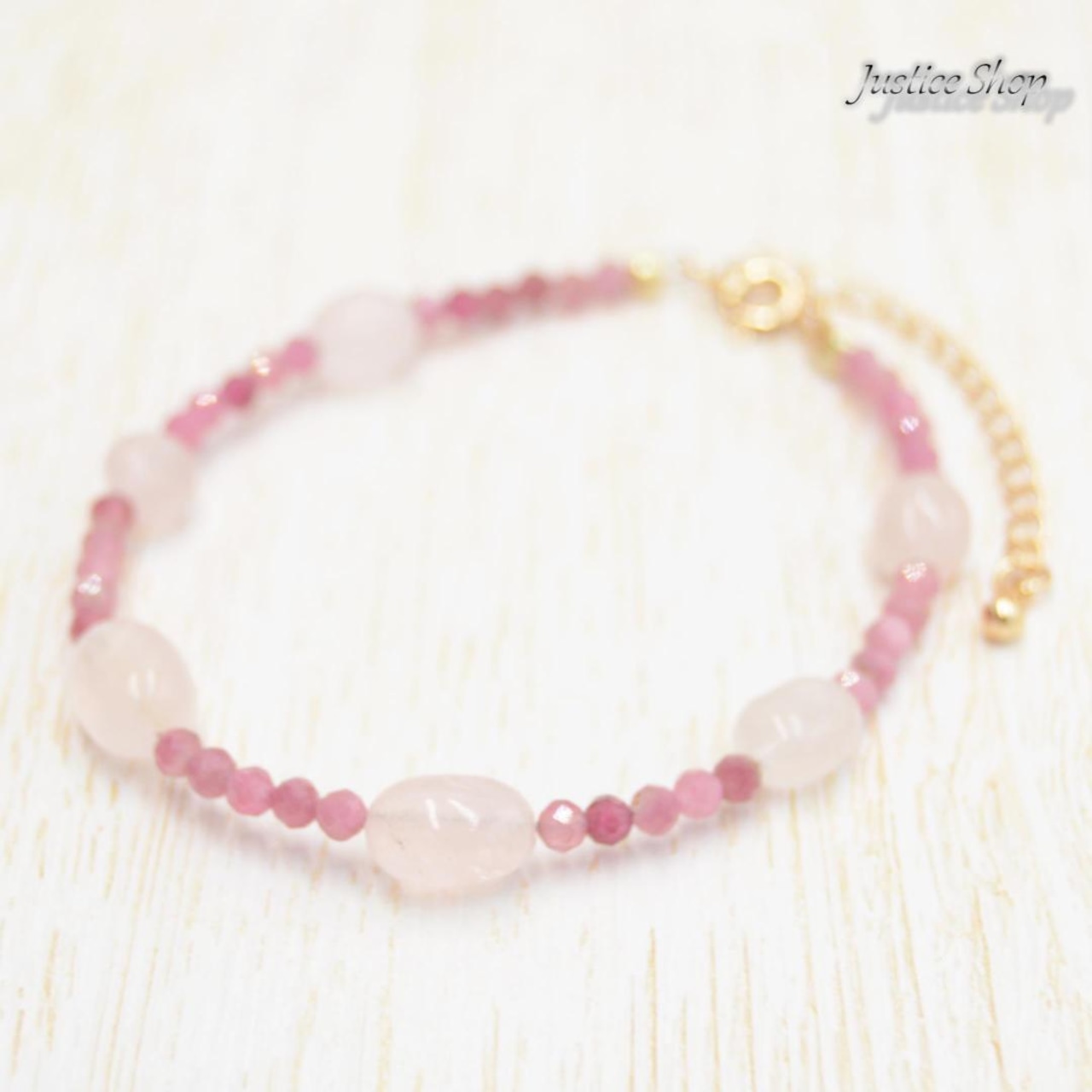 ローズクォーツとピンクトルマリンが織り成す、優しい輝きをお楽しみください。腕元を彩るだけでなく、心まで包み込むような安らぎと愛情のエネルギーをお届けします。