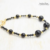 商品名 :【ワイヤーブレスレット マンテル金具 ブラックトルマリン(黒曜石) × ブラックトルマリン(黒曜石) × ブラックスピネル 1R4】